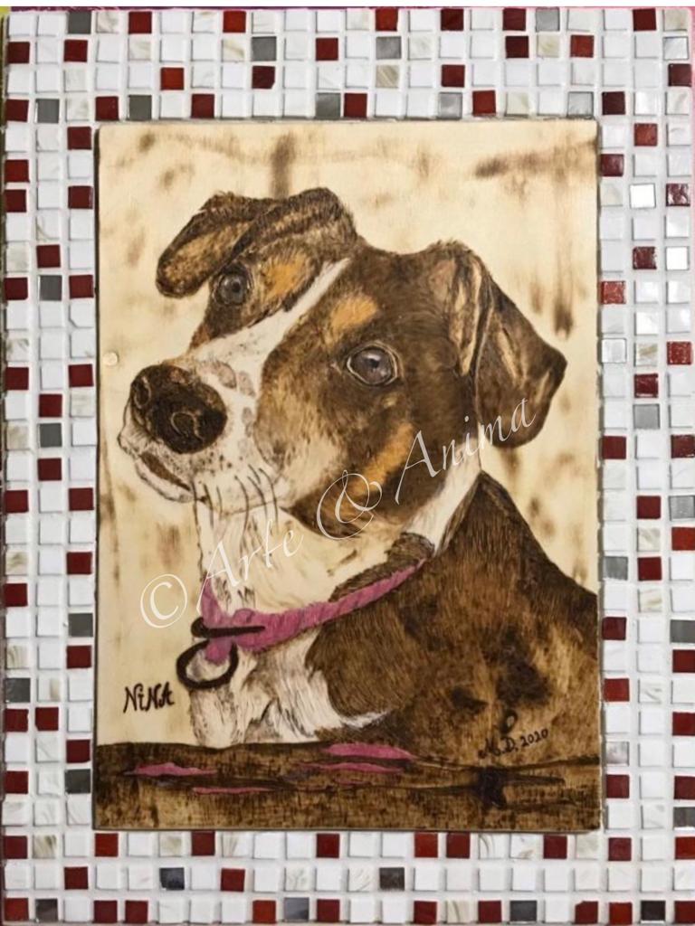 Portrait avec pyrogravure et couleurs Caran D 'Ache Luminance sur contreplaqué A4