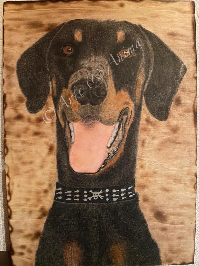 Portrait de Dalì sur contreplaqué A4 avec crayons Caran D'ache Luminance
