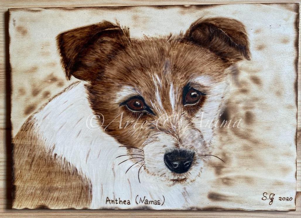 Portrait de Namas avec pyrogravure et couleurs Caran D 'Ache Luminance sur contreplaqué A4
