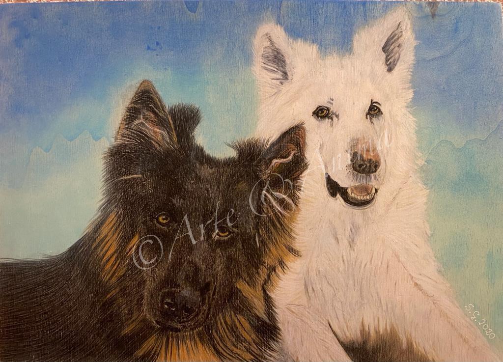 Portrait sur contreplaqué A3 avec couleurs Caran D 'Ache Luminance, pastels Neocolor et pastels Rembrandt