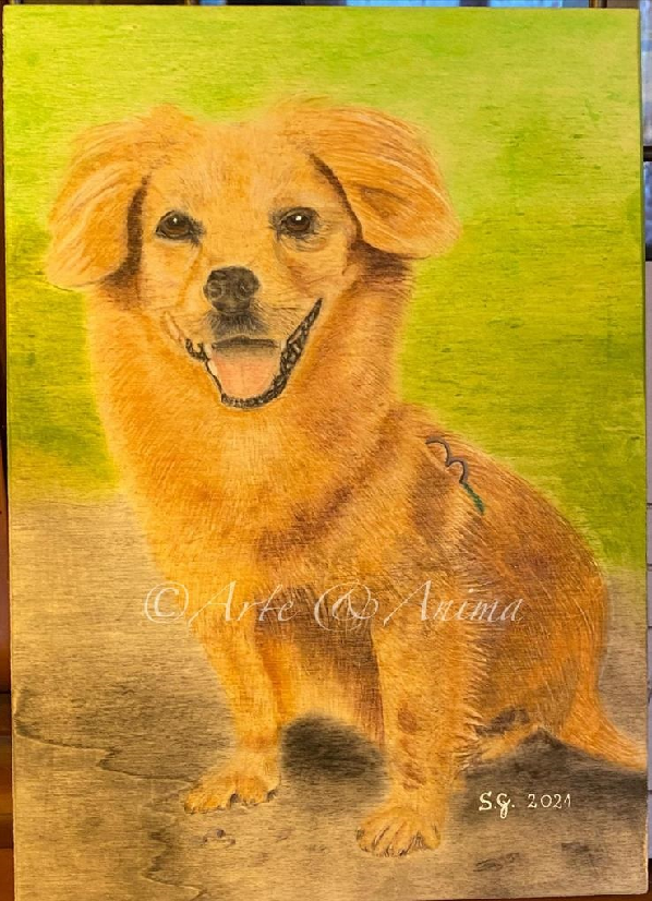 Ritratto su legno compensato con colori caran d' ache luminance e pastelli Rembranddt